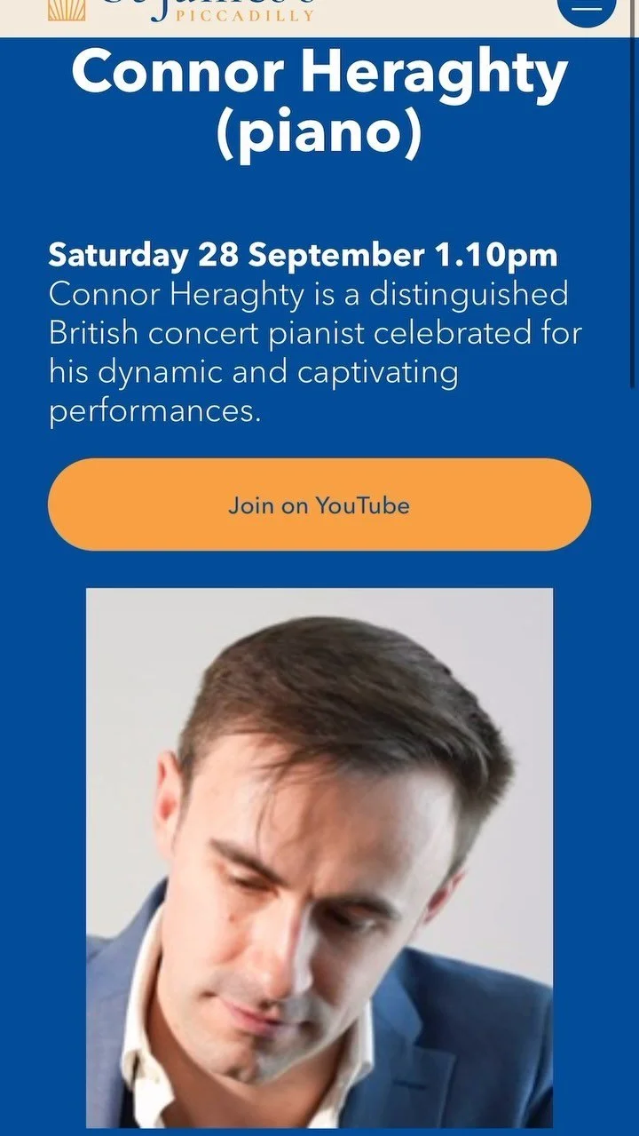 British concert pianist Connor Heraghty has performed for audiences worldwide as a soloist and chamber musician, including concerts at Wigmore Hall, Milton Court Barbican, St Martin-in-the-Fields, and Buckingham Palace in the presence of King Charles. Internationally, he has played at venues such as The Fazioli Concert Hall in Venice, The Lithuanian Music Theatre & Academy Hall, and Radziejowice Palace in Poland. Notable highlights this season include solo performances with orchestras such as The Symphonique De Nivelles, recital tours in the USA, Portugal, Azores, and Bermuda as a guest artist for Cunard, and numerous concerts across Europe and the UK, where his artistry continues to resonate deeply with audiences. He presents engaging programs for audiences and has been a prize-winner in numerous competitions such as The Wales International Piano Competition, The UK Liszt International Piano Competition, Recondite Armonie Piano Competition, and Worthing Concerto Competition. In addition to his solo work, he is the co-founder of the London Piano Duo.
